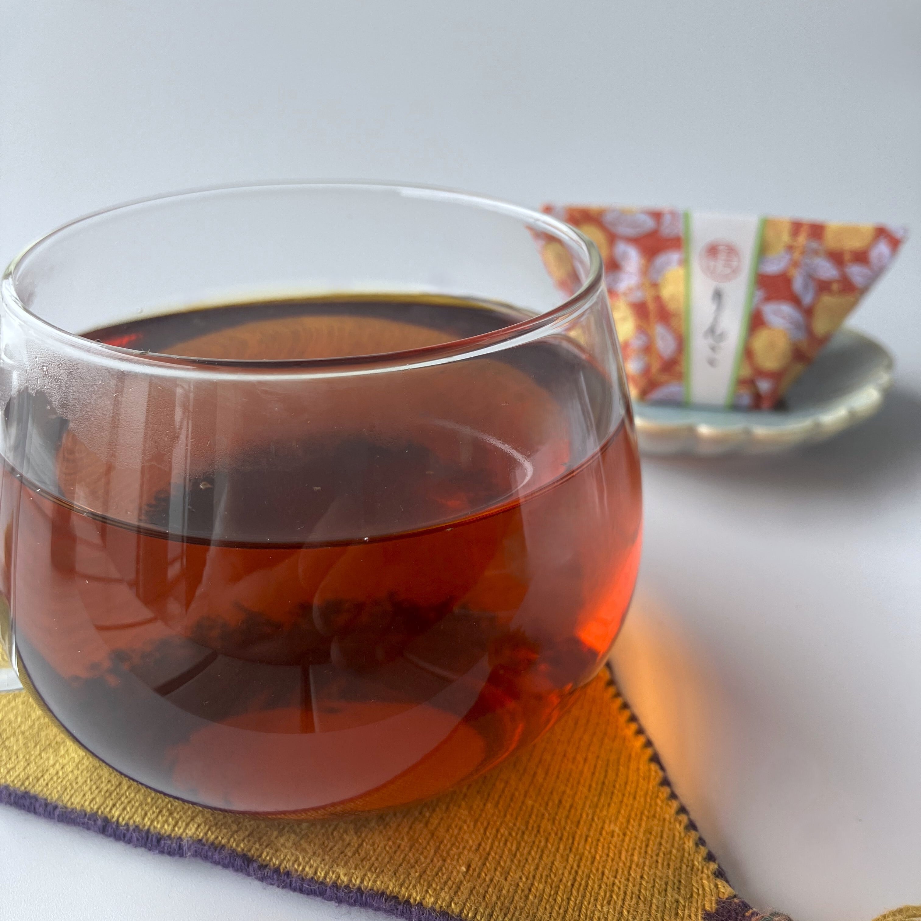 ●水出しの場合、水500mlにティーバッグ1つをいれ半日(12時間)程抽出するのがお勧めです。香りをしっかり楽しみたい場合は、水量は300-400mlと少なくして下さい。